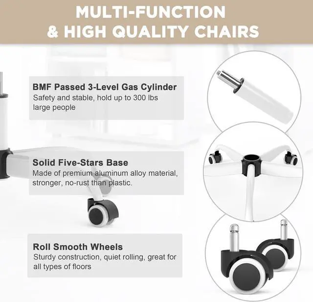 [! ] The reinforced nylon frame and heavy-duty metal base support up to 300 lbs. This office chair meets commercial-grade durability tests, ensuring long-term performance. SGS & BIFMA PASSED. &.!
