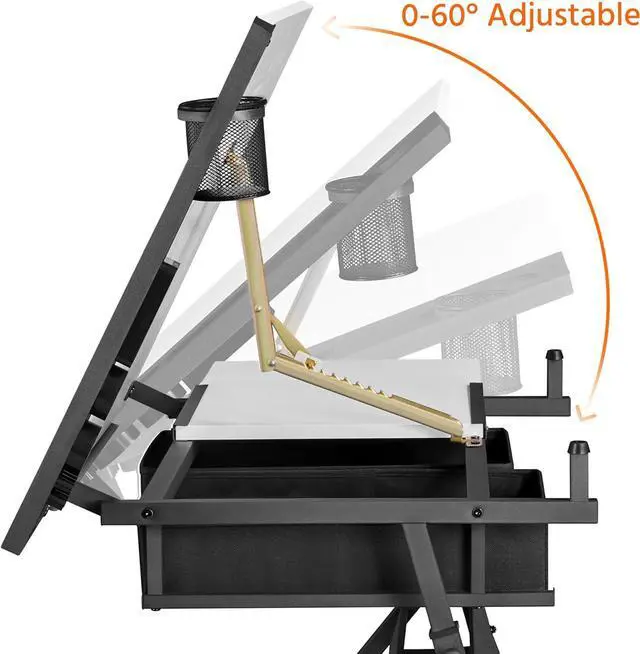 Easy Angle Adjustment: The angle of the tabletop can be adjusted from 0 to 60° by simply lifting/ lowering the top. This practical table works perfectly as a regular flat table for your laptop/ books, and an easel for drawing and drafting