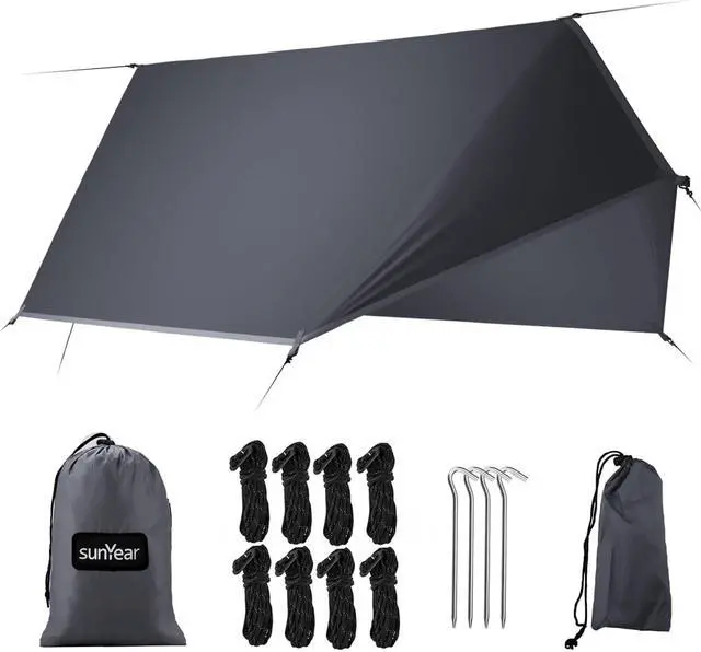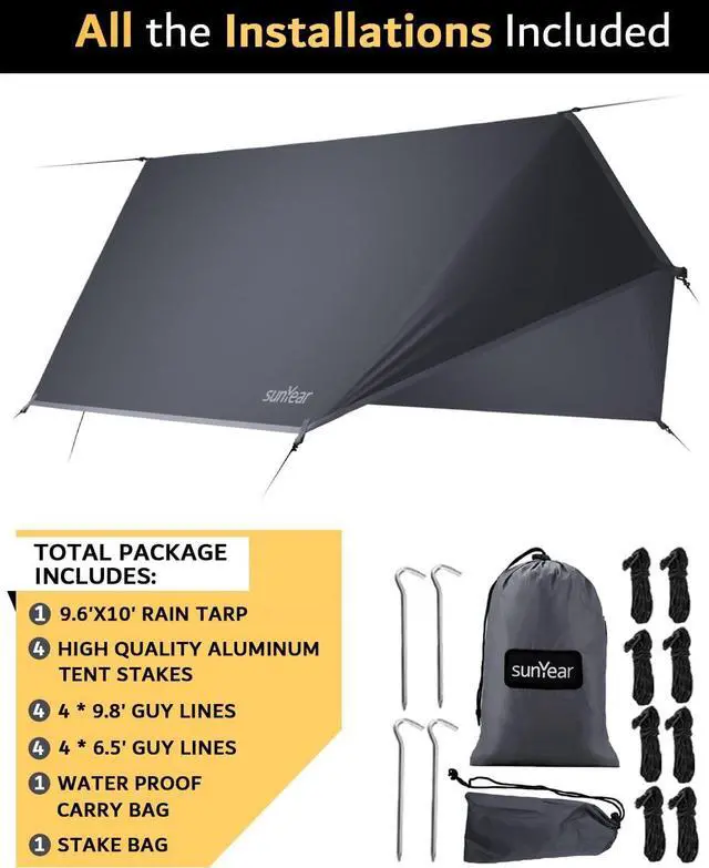 Easy Setup: With all the installation accessories like 8 tie lines, 4 tent metal stakes in the portable bag, the hammock tarp rain fly can be easily folded and set up in minutes. Dont need to buy anything extra. Also a great gift for hiker, backpacker, trekker and camping fans