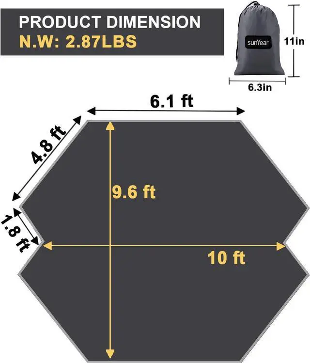 Perfect Size for Most Hammocks: 10* 9.6 ft hammock rain fly is suitable for covering the most hammocks in the market completely which also can easily fold into a compact size(9" x 7" x 10" ), easy to carry