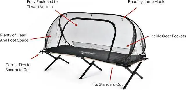 100% enclosed so you' re safe from biting bugs and assorted unsavory vermin