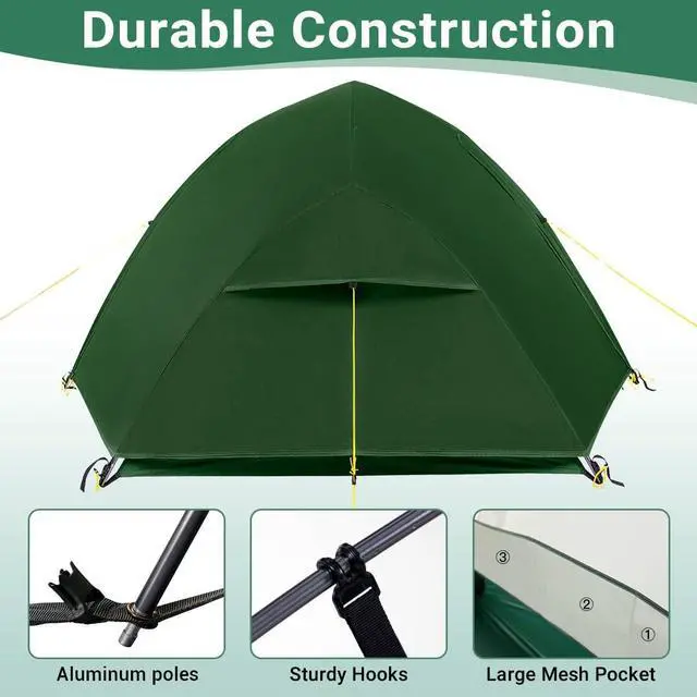 Qucik SETUP&Versatile: A hiking tent should be very easy to erect and takedown. Free-standing and two Aluminum poles designed for lightweight hiking tent' s fast pitching. Easily set up by one person with no experience. Whether you' re camping, hiking, or engaging in other outdoor activities, this Ultralight tent is a versatile and reliable choice. It' s easy setup, durable materials, and thoughtful design make it perfect for various outdoor adventures