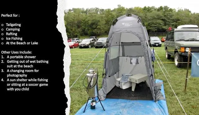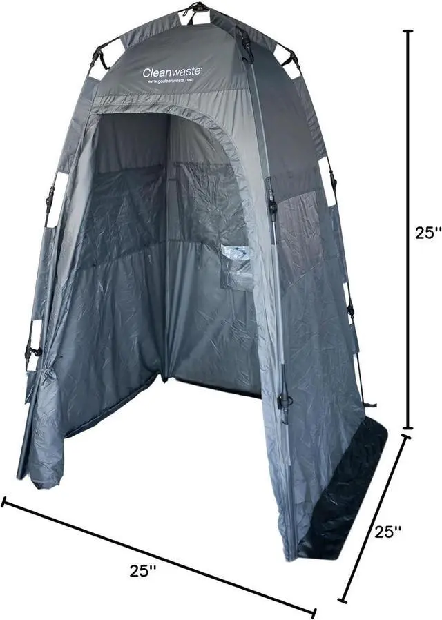 PORTABLE TENT FOR CLEANWASTE PORTABLE TOILET OR AS A SHOWER BLIND- Our 3 pull down windows add additional ventilation for Temp. and odor control when needed. Hang your Solar Shower from a nearby limb and you have a perfect shower