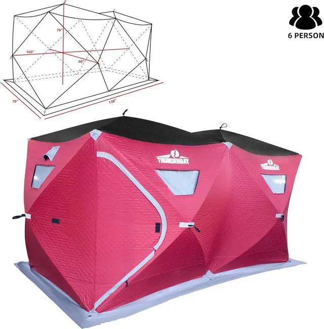 Includes 12 heavy duty ice anchors and reinforced tie downs to hold secure on windy days