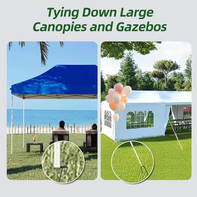 SHARP TIPSThe j hook stakes have a chiseled end to facilitate ground penetration, the metal steel is sturdy and does not deform when hammered into tough ground. These ground stakes are thick and heavy duty and they will not budge in a strong wind.