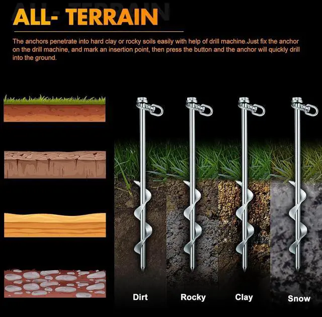 Easy to Install: the earth anchors are easy and convenient for you to install, with the help of the T handle hex wrench, the pointed ends can easily penetrate into the soil, greatly improving the efficiency, saving your time and energy