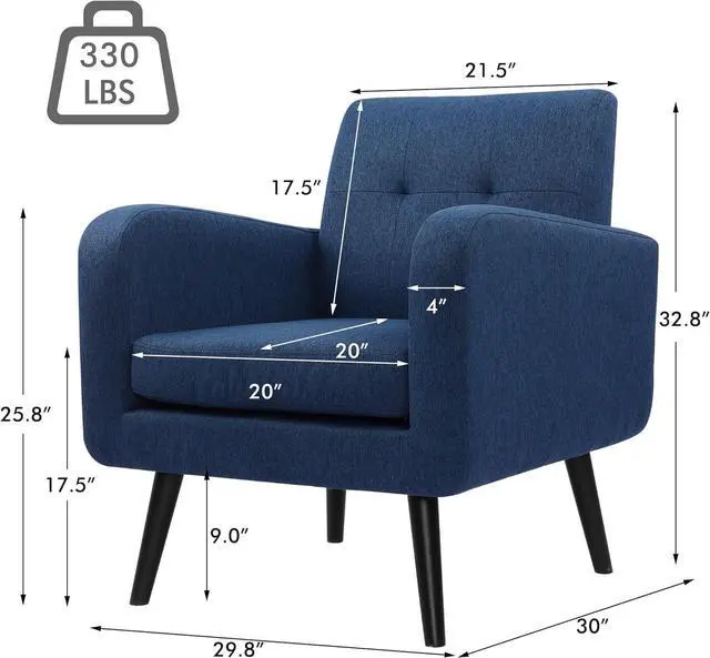 Quick Assembly: Accent chair packed with assembly instruction, screws and assembly tools; each blue armchair only needs 10 minutes to finish the installation