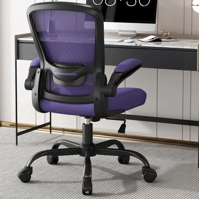 ADJUSTABLE DESK CHAIR--More ComfortThis task chair has a 4 inch lifting range to meet the needs of people of different heights, it also has a reclining function of 90-135 °which allows you to relax yourselves after work. This mesh computer chair with flip-up armrest and seat height adjustable means you can find the perfect position to ensure you a pain-free day for long hour sitting.