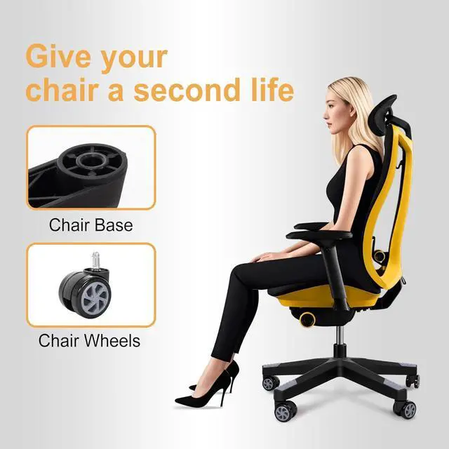 Casters: The package includes a set of replacement chair bases, 5 chair wheels, installation package