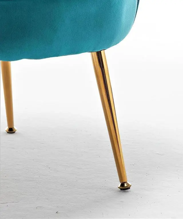 ELEGANT GOLD METAL LEGS: The bold gold finish adds a glamorous and modern touch to the green velvet chair; The metallic sheen creates a stunning visual contrast against the plush velvet upholstery