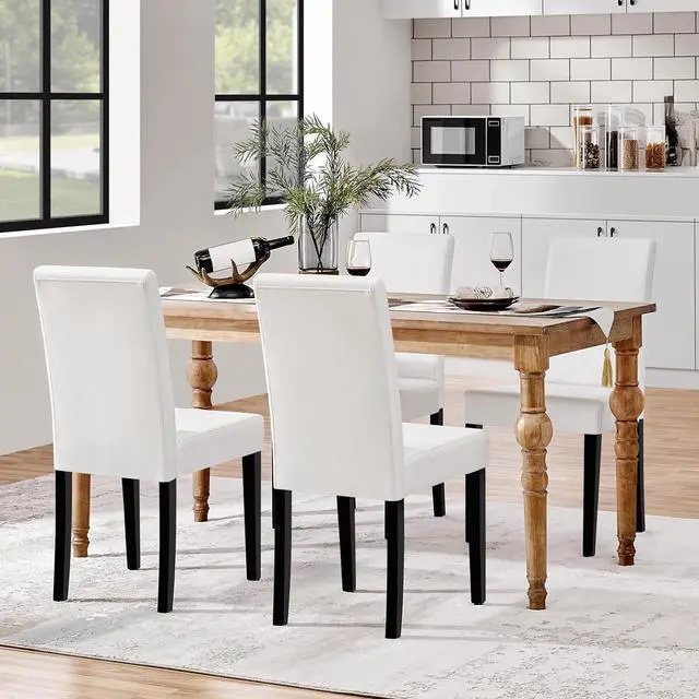 Selected Materials: Our faux leather dining chairs are made from faux leather, solid wood, composite board, foam, and rubberwood. The foam padded seat and high-backed backrest provide you with much comfort and ease