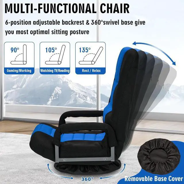 Degree Swivel Base: This floor gaming chair equipped with a round chassis, which can rotate freely and silently. Brings more convenience and fun to you, you can reach out any angle things without stand up. And also can change your sitting direction randomly. We also provide a removable cover on the base, prevent your floor from being scratching.