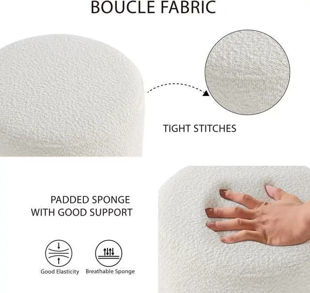 MODERN & STYLISH - The round ottoman can add a groovy touch to living room, bedroom or makeup room. With comfy padded seat, it can be a pretty vanity chair for makeup room but also a comfortable foot stools ottoman, small side table, extra seating for living room, entryway, office.