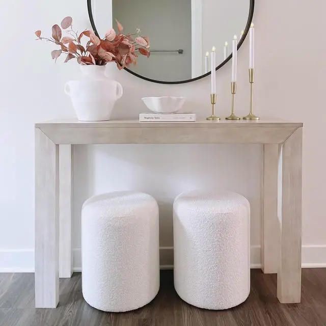 MULTIFUNCTIONAL - Completed with steady a comfy pad, the chic ottoman stool for vanity with timelss style can be a makeup vanity chair to your dressing, a foot stool next to your sofa, a padded seat in the entryway.