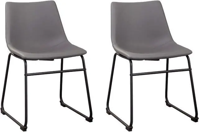 MID-CENTURY INSPIRED: These distinctive chairs with bucket seats upholstered in gray faux leather upholstery and tubular metal bases in a black finish have a charmingly vintage tone
