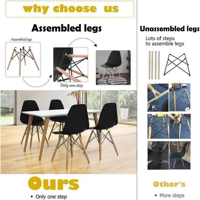 [Multifunctional Usage]This four dining chair set is perfect for you to invite your friends or relatives. It has elegant and simple design, which could suitable for different decor design. A perfect size for most patio, balcony or deck areas.