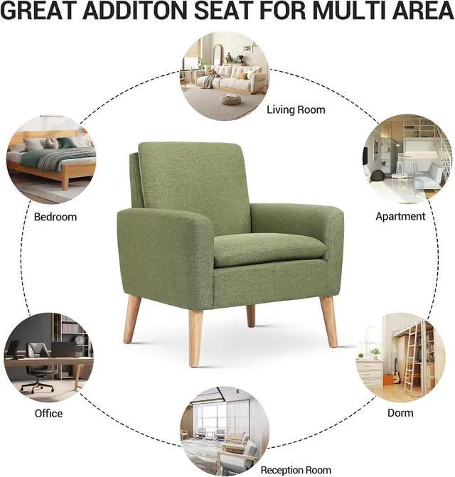 Mid-Century Modern DesignEmbrace timeless elegance with this mid century modern accent chair, featuring a layered cushioning design for the backrest and seat with padded arms, clean lines and a minimalist silhouette. Its minimalist silhouette enhances any décor with timeless elegance, this piece of furniture craft to offer stylish and supportive seating, making it a great armchair for living room, bedroom, reading nook guest room.