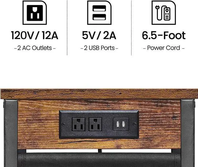 [C Tables with Charging Stations] This couch side table has 2 AC outlets, 2 USB ports allowing you to charge your phone, iPad and laptop from your couch. the electrical cord is 6.5 ft long, enough to keep you away from wall corner where the home power outlet located.