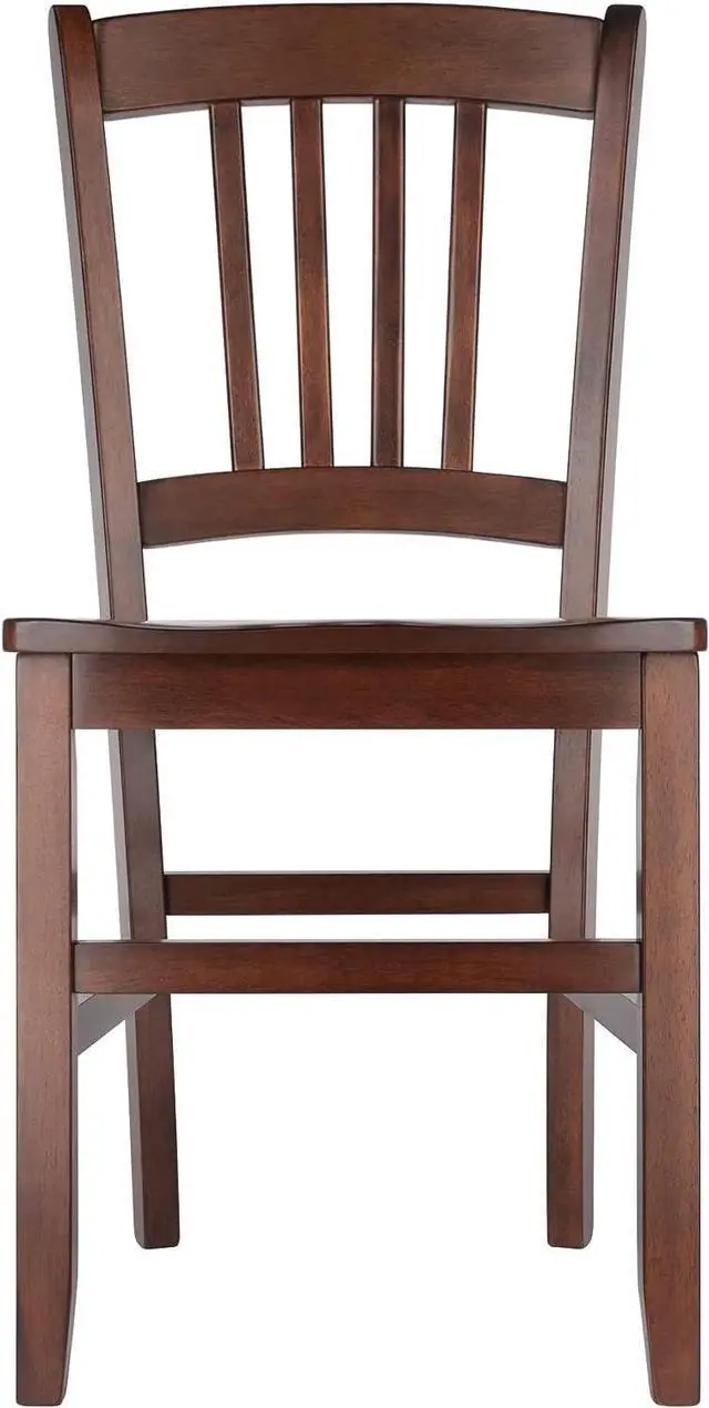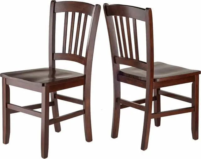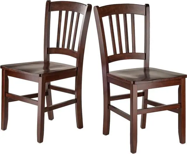 Overall size is 17.17 " W x 19.29 " D x 34.69 " H Contoured seats and gently curved backs for comfort Solid wood construction Seat height is 17.91 " H Assembly required
