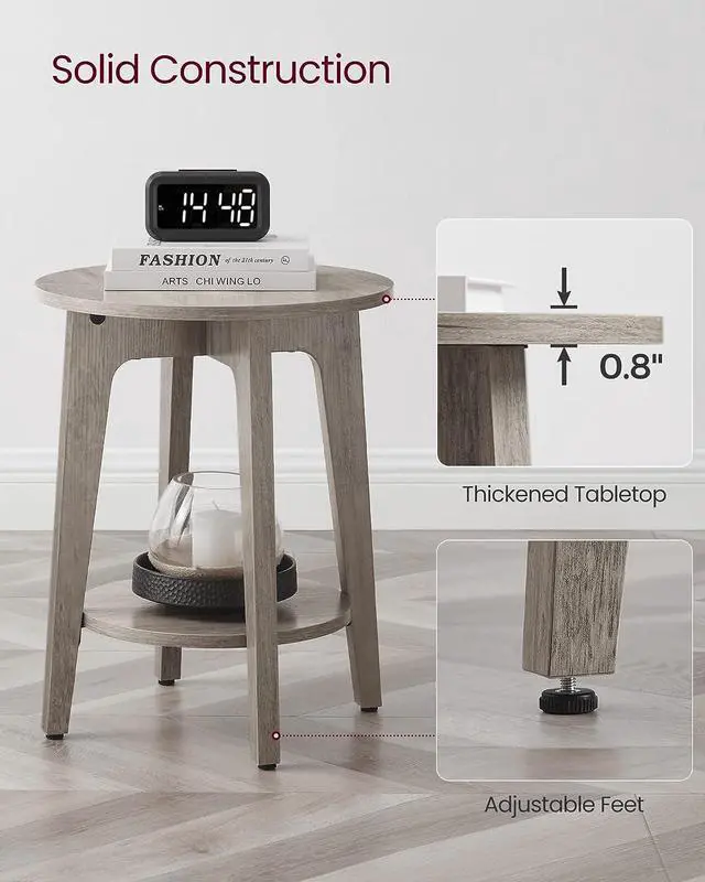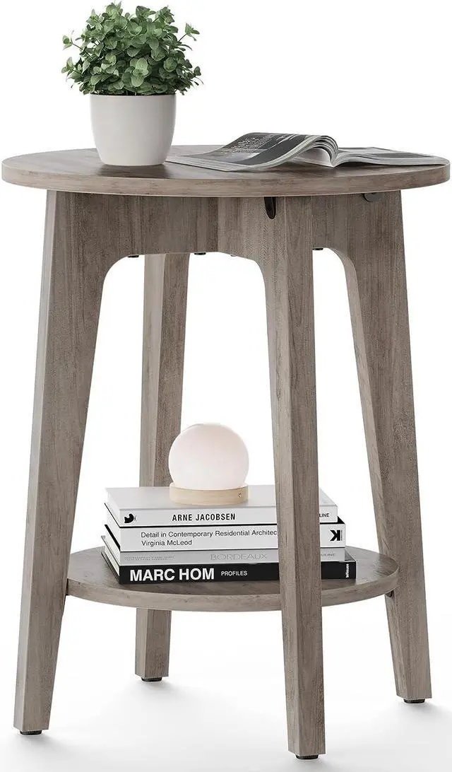 [Modern Vibe] The round tabletop, greige finish, and angled legs merge on this small side table, adding a clean, sleek modern vibe to your living space