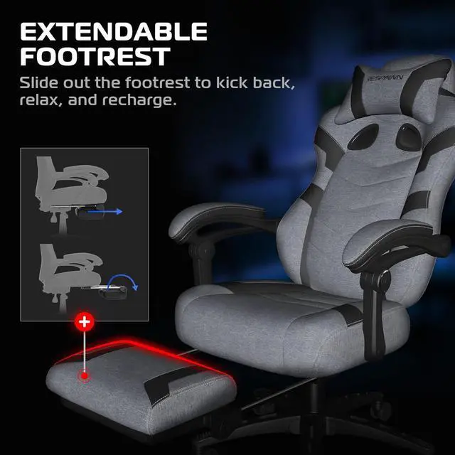 Game: This gaming chair offers thicker, segmented padding with dual-layer, high-density foam for lasting comfort. Enjoy unparalleled ergonomic support with a built-in footrest and lumbar support for an enhanced gaming experience.