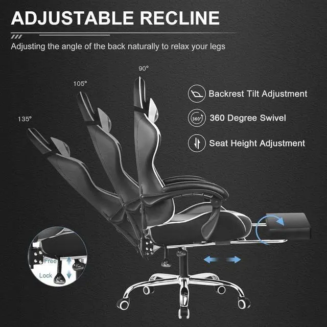 Liberate Your Feet: Will you feel tired for sitting all the time? Sure. Then you can choose the chair with footrest to relax your feet. When you dont want to straighten your back and sit, just take out the footrest, put your feet up, turn on your favorite music, and start enjoying the comfort! And dont worry about clean, it is also made of high-quality PU leather, just wipe it with a soft cloth and it will shine as new.