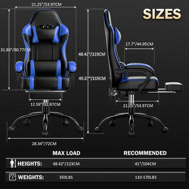 Sturdy StructureOur gaming computer chair is extremely stable with its sturdy one-piece alloy frame and heavy-duty anti-tip axle. The BIFMA-certified heavy-duty metal base coupled with 360-degree swiveling and smooth-rolling rubber castors allow you to effortlessly move the pc gaming chair without making any noise or scratching the floor.