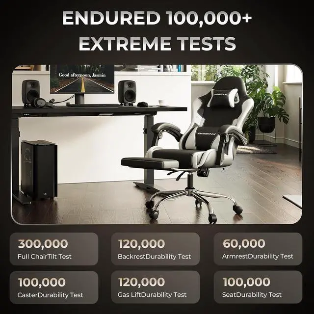 Certified: This Heavy Duty Gaming Chair supports up to 330lbs, built with an aluminum five-star base, SGS-certified gas lift, and smooth rolling casters. No wobbling, no squeaksjust reliable stability for your gaming setup or home office.