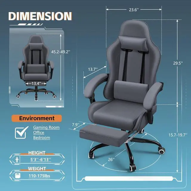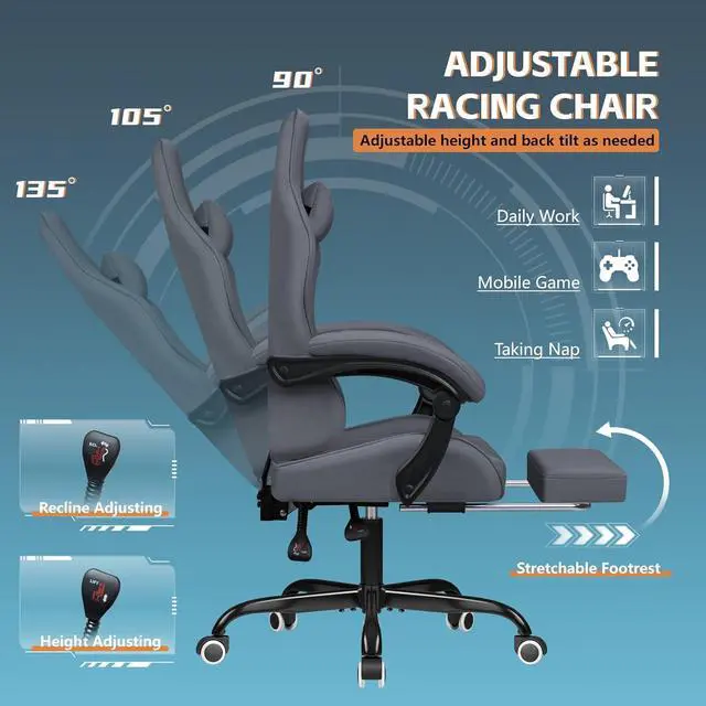 Racing-Inspired Style for Any Space: Inspired by professional racing seats, this gaming chair features a sleek, sporty design that adds a modern, e-sport vibe to your gaming or entertainment space. Its versatile aesthetic makes it a perfect fit for offices, study rooms, or living areas, suitable for both adults and teens.