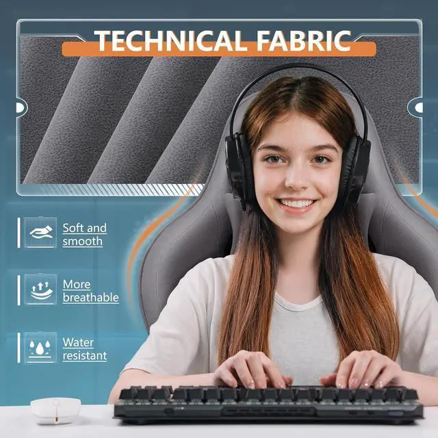 Premium Quality Gaming Chair: Upgrade your gaming or workspace with this high-quality fabric gaming chair, designed for superior comfort and durability. Crafted with breathable technical fabric and elastic molded sponge cushion, it offers enhanced comfort compared to traditional leather.