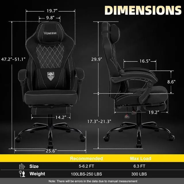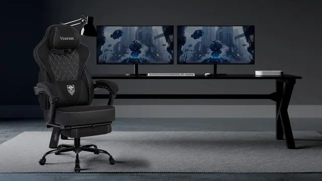 Highly Breathable properties: The surface of the Vonesse gaming chair is covered with a layer of soft and breathable fabric. You can sit on it comfortably for a long time without feeling sweaty or damp. In addition, the fabric has good elasticity and can provide better support for your body.