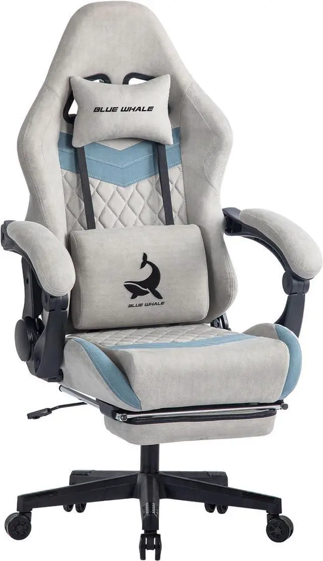 ° The Blue Whale big and tall gaming chair features a thickened steel tray mechanism, offering a 90-155° reclining angle and 15° rocking function. Whether you' re gaming or taking a break after a long workday, the comfortable reclining and footrest provide the perfect relaxation.