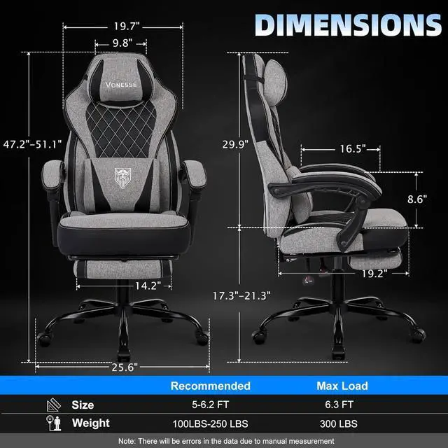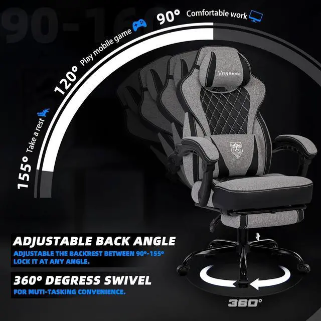 Highly Breathable properties: The surface of the Vonesse gaming chair is covered with a layer of soft and breathable fabric. You can sit on it comfortably for a long time without feeling sweaty or damp. In addition, the fabric has good elasticity and can provide better support for your body.