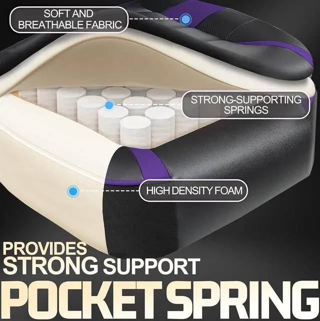 Ergonomic Gaming chair for Advanced cushion technology: Tailored to gamers of all body types, our gaming chairs for adults adopts a wingless seat design, providing ample sitting space for players and allowing you to maintain a comfortable seating experience. Therefore, you can lie down at will in the comfortable space, or freely change your postures, stretch your body and cross your legs to your heart' s content.
