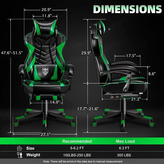 Computer chair brings comfort and relaxation: The game chair is equipped with an adjustable headrest, providing enhanced support for the neck and head. The adjustable lumbar support of the gaming chair with massage comes with a built-in massage function, enabling you to fully relax. What' s more, the gaming chair with footrest offers an extra level of comfort, making it the perfect choice for prolonging both gaming and working sessions.