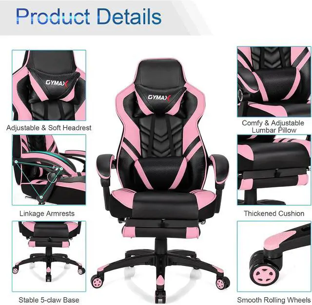 Ergonomic DesignThick sponge padded cushions plus soft PU and PVC leather provide ultimate comfort. The high backrest, comfy headrest and lumbar support give strong support for your body, reducing fatigue after sitting for a long time. Additionally, the retractable footrest is designed for you to take a nap when you' re tired.