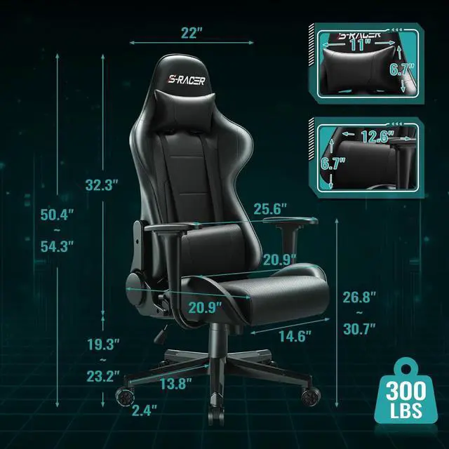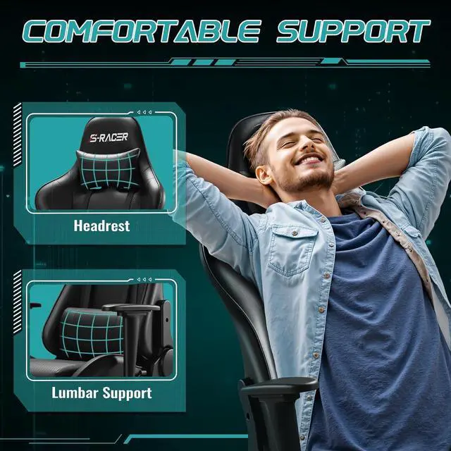 Sturdy Construction with 300lbs Weight Capacity: Engineered with a strengthened frame and base, this gamer chair delivers reliable stability and support, accommodating up to 300 pounds for long-term durability