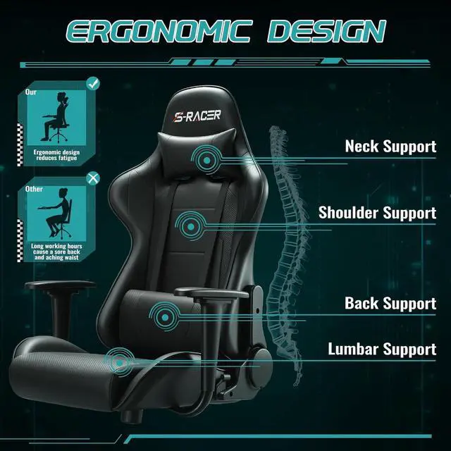 Customizable Support for Neck and Lumbar: The adjustable headrest and lumbar pillow are designed to provide targeted support, helping to maintain spinal alignment and reduce pressure points during extended use