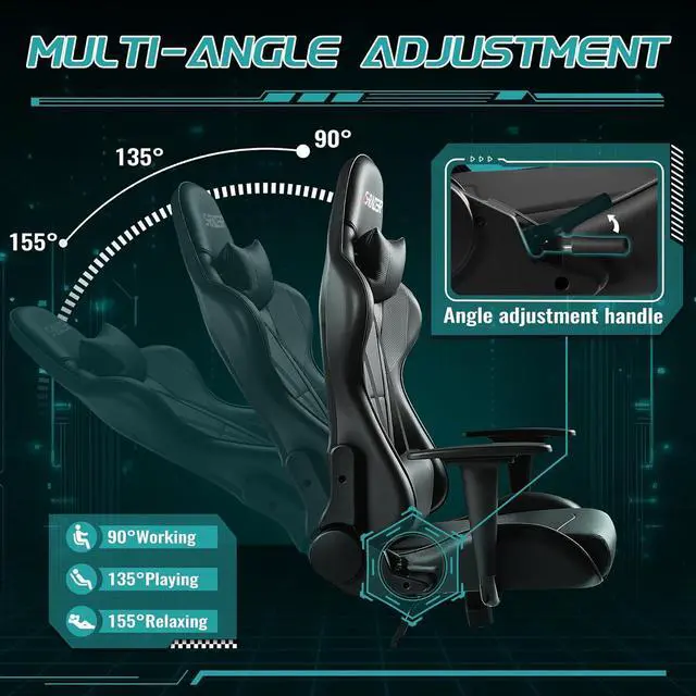 Relaxation: The game chair reclines smoothly from 90 to 155 degrees, effortlessly supporting various postures for focused gaming, comfortable working, or moments of rest