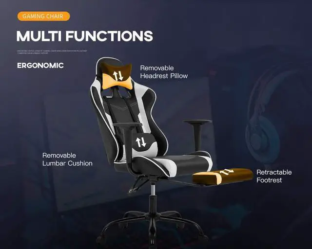 ergonomic office chair-adjustable lumbar support & headrest - ergonomic racing chair covered by breathable premium pu leather with freely adjustable lumbar support and headrest pillow protecting your spinal and neck. and most important, locking in any position when you recline 90-135 degree backwards movement, can be lying down like bed. office chair gaming chair computer chair pu leather adjustable desk task ergonomic chair racing chair executive chair swivel chair rolling chair.