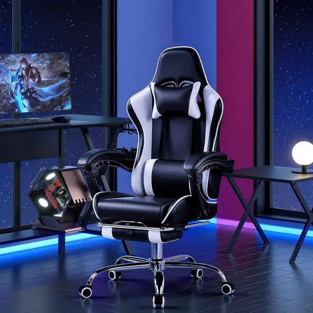 Relaxing Support: The video game chair come with a supportive headrest, adjustable lumbar pillow, and a retractable footrest. This ergonomic office chair let you say goodbye to fatigue and hello to full-body comfort