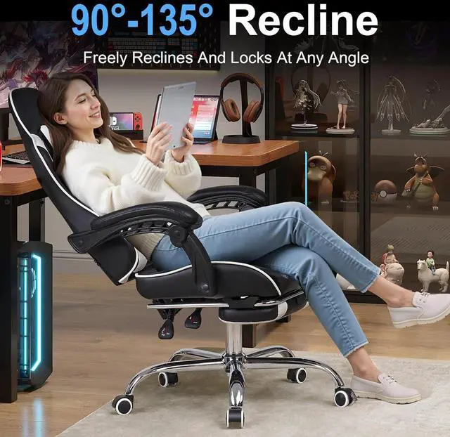 Multi-Position Recline: This game chair adjust seat height ( 18.1122. 05" ), backrest angle (90°135°), lock into perfect position. Whether gaming, working, or relaxing, the gaming chairs for adults adapt to your needs instantly