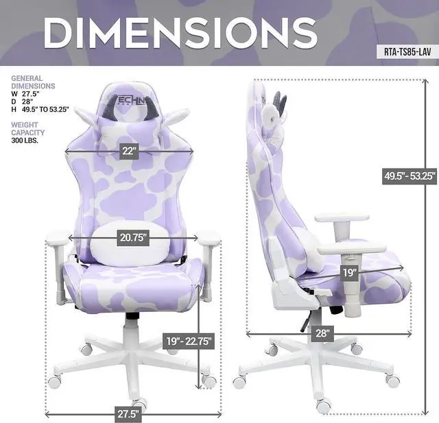 Versatile Application: Perfect for gaming setups, home offices, computer workstations with its unique purple cow print making it an ideal chair for adults and teens