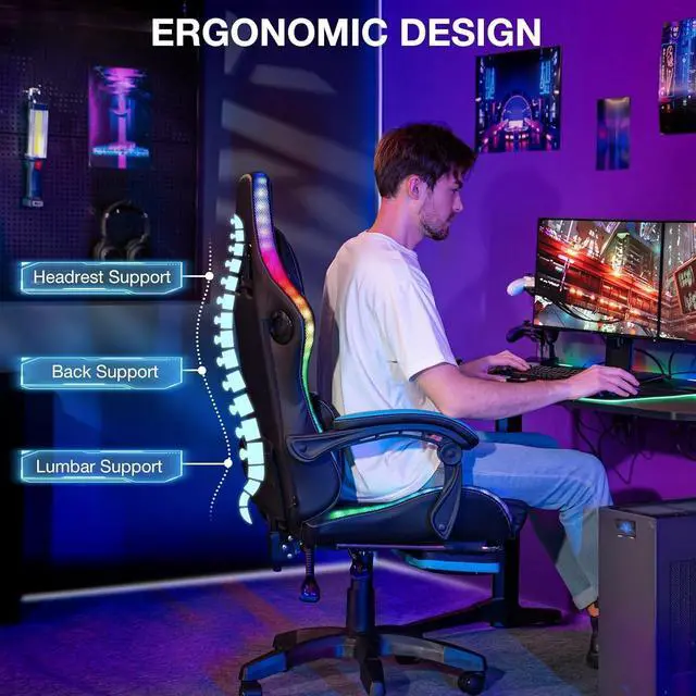 RGB Gaming ChairLED gaming chair, flashing lights surrounding the whole chair and multiple lighting modesthat can create a more dynamic feel