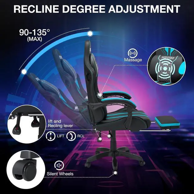 Massage LumbarMassage gaming chair features two motors in the waist cushion, providing ultimate comfort for gaming or homework