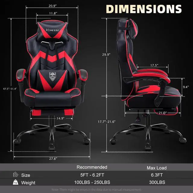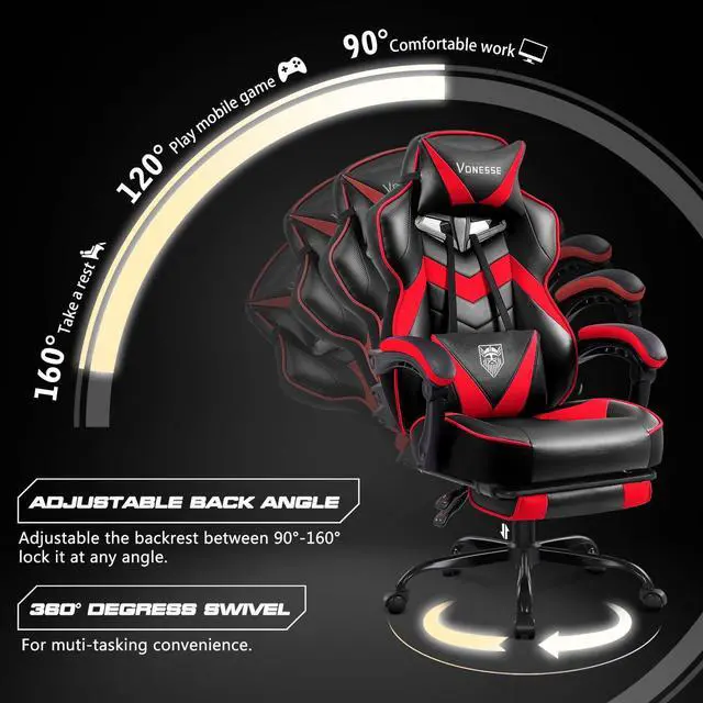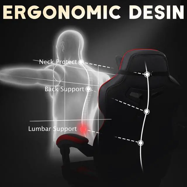 Computer chair brings comfort and relaxation: The game chair is equipped with an adjustable headrest, providing enhanced support for the neck and head. The adjustable lumbar support of the gaming chair with massage comes with a built-in massage function, enabling you to fully relax. What' s more, the gaming chair with footrest offers an extra level of comfort, making it the perfect choice for prolonging both gaming and working sessions.