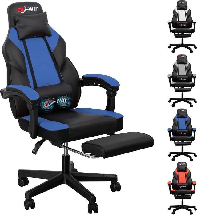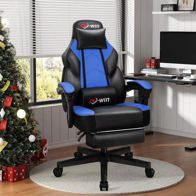 Ergonomic SeatingThis gaming office chair comes with a soft headrest and massaging lumbar support, a body-hugging high backrest that relieves neck and back fatigue for an ergonomic sitting experience while you play games, as well as a footstool to allow you to sit more comfortably, relax and enjoy your games in a more laid-back position.
