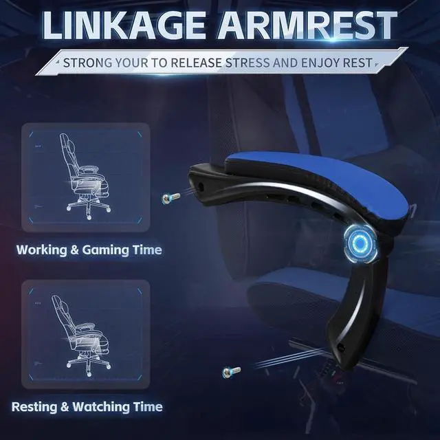 Versatile Gaming ChairOur gaming chairs offer customized comfort to your preferences. njoy the flexibility of 360° swivel, height adjustment and seat back that can be locked in any position up to 135°. In addition, the linkage armrests provide optimal comfort by better supporting your arms and relieving wrist stress and muscle strain.