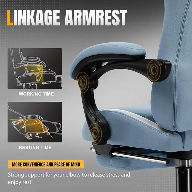 High Quality Material: Common gaming chairs are equipped with plastic legs generally to save costs, but we still insist on applying the same material as the built-in metal frame. No fear of high or low temperature, no fear of the sunshine, it will not rust and break. The gaming chair surface is made of highly breathable mesh fabric, which has good heat dissipation. Even on a hot summer day, sitting in a chair will not feel stuffy