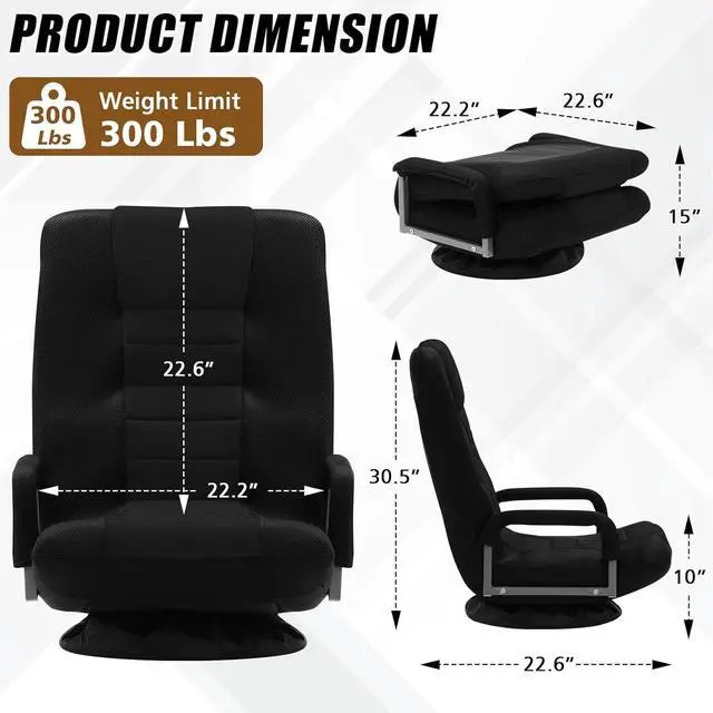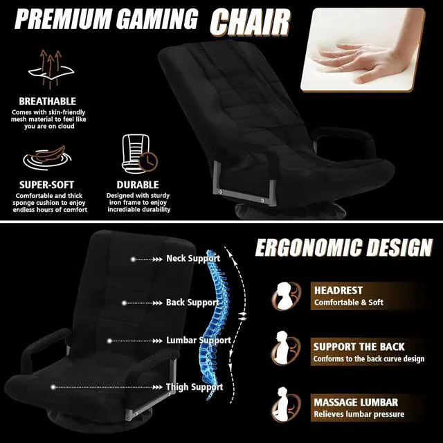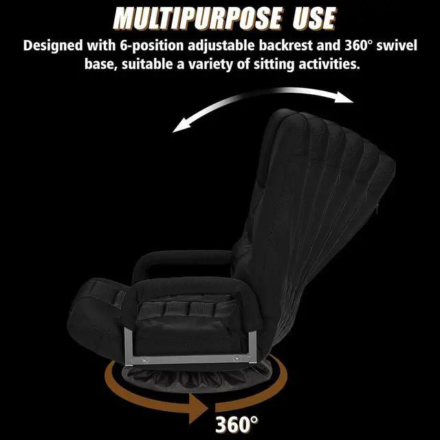 6 ADJUSTABLE POSITIONS: Our floor gaming chair can make you enjoying sitting experience with 6 different positions from 90° to 135°. You can play game, watch video or TV, reading, or take a nap, etc when reclining different angles. It will be a relaxing helper for you to relieve your pain in long-term sitting. Additionally, our floor chair features ergonomic design, which can support your neck, spine and hip. It also has padded headrest and handrails, which is prefect for kids and adults.